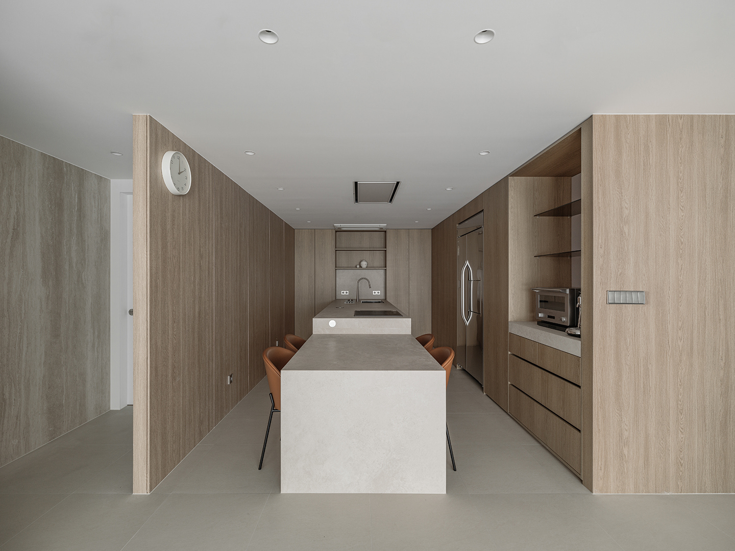 아일랜드를 중심으로 한 공간의 레이아웃은 주방을 단순한 기능적 공간을 넘어, 식사와 대화, 휴식과 사색이 자연스럽게 어우러지는 라이프스타일의 중심으로 변화시키는 역할을 합니다.