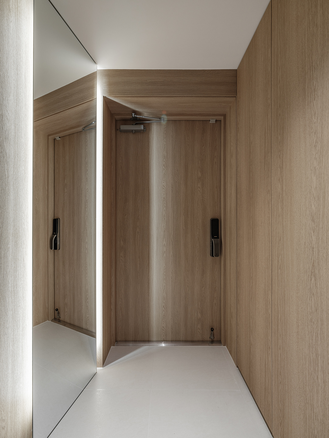 결과적으로, 오크 톤의 따뜻함과 간살 격자가 만들어내는 고급스러운 디테일, 그리고 실용적인 수납 설계가 조화를 이루며, 현관을 단순한 출입 공간을 넘어 집의 품격과 취향을 담아내는 웰컴 존으로 완성했습니다.