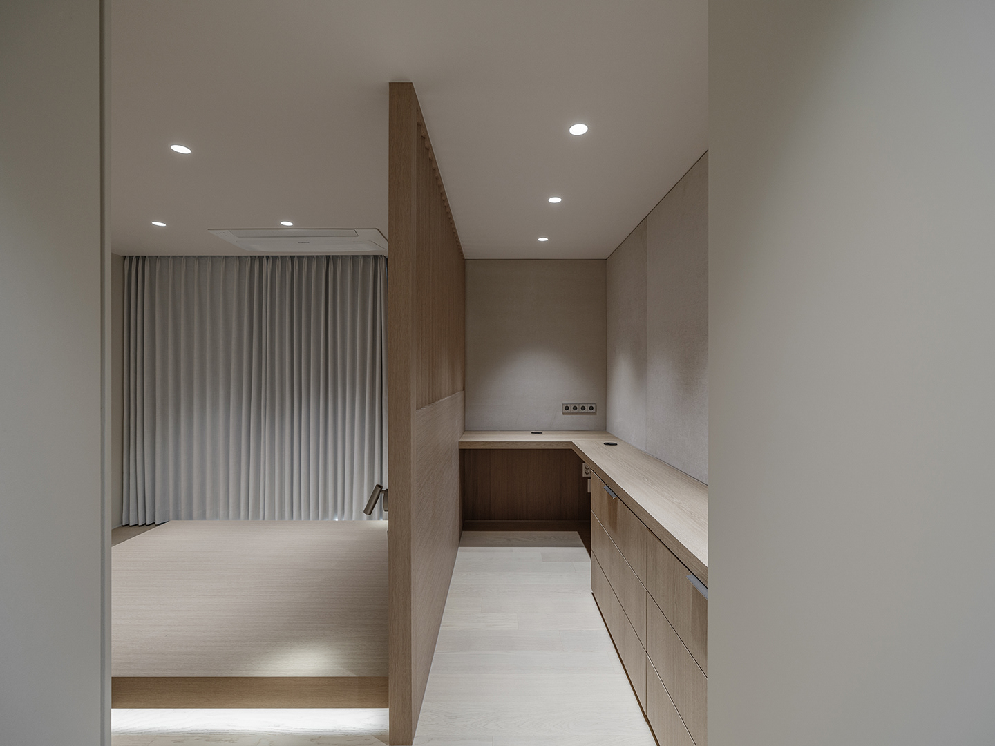 이 작업 공간은 독서나 개인적인 업무 등 다양한 활동이 가능하도록 설계되어, 안방을 단순한 휴식 공간에서 한 단계 더 진화시켰습니다.